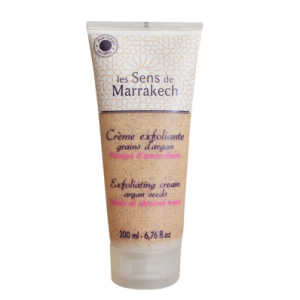 Crème exfoliante grains d'argan 200 ml tube pétales d'amandiers (sens de Marrakech)